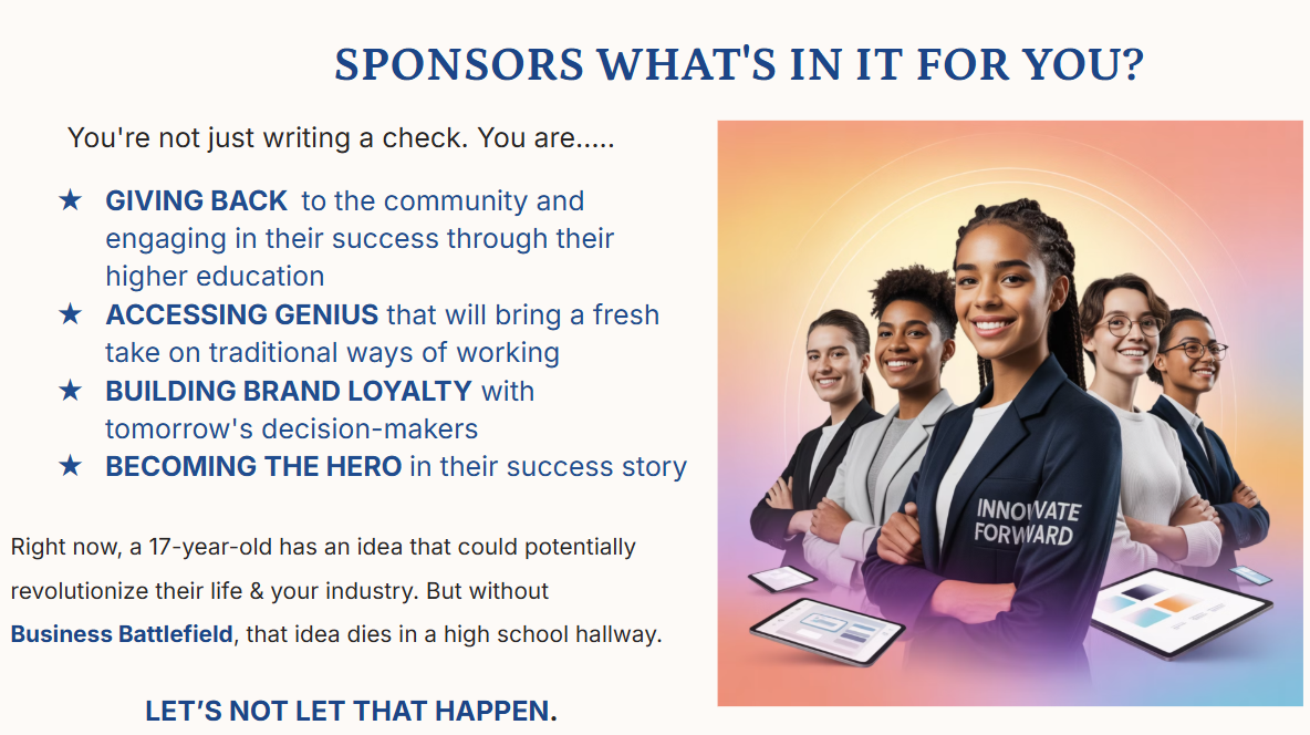 View the attached flyer for additional details, or contact us to explore sponsorship opportunities. Together, we can empower the next generation of innovators and leaders.